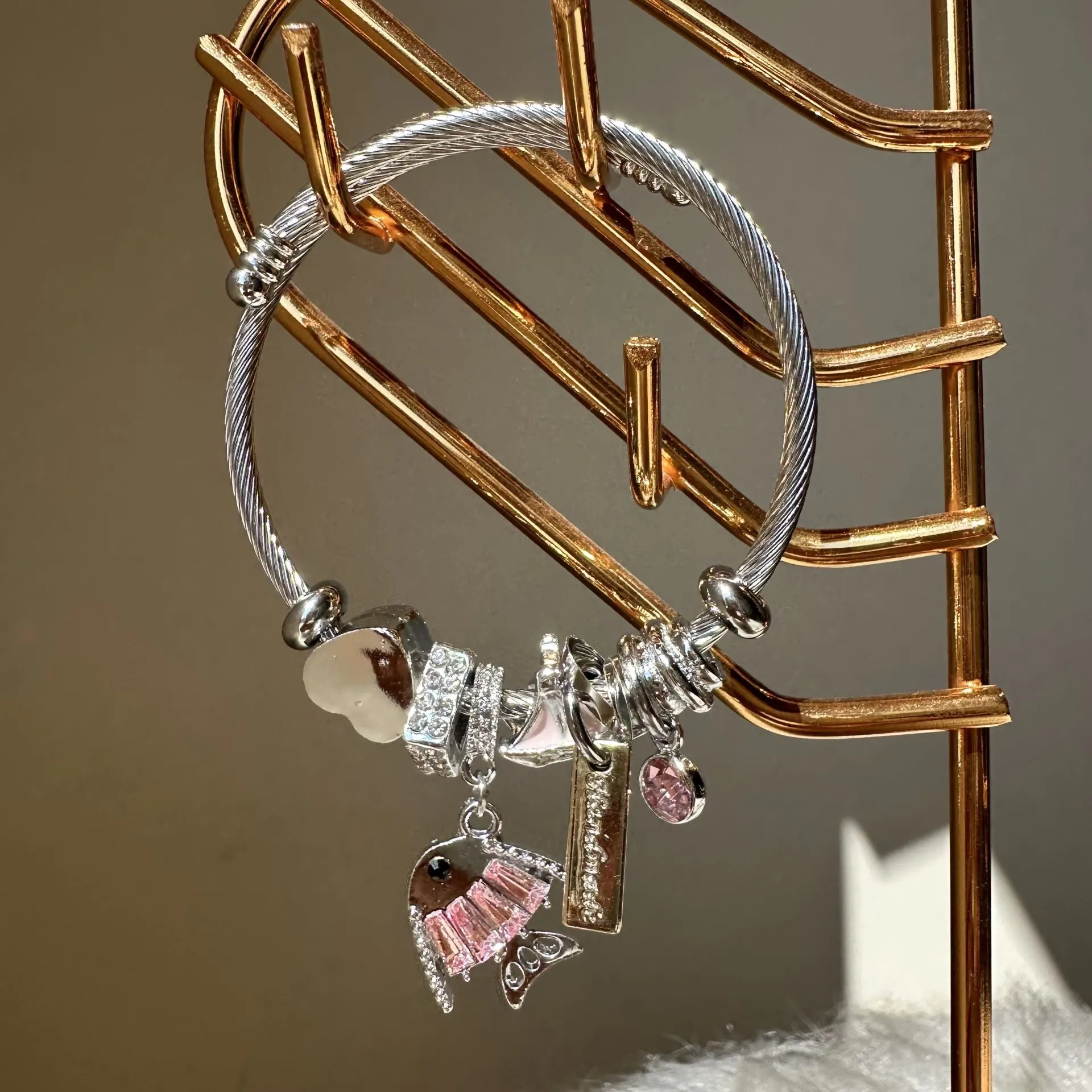 TAŞLI BALIK ÇELİK BİLEKLİK PEMBE