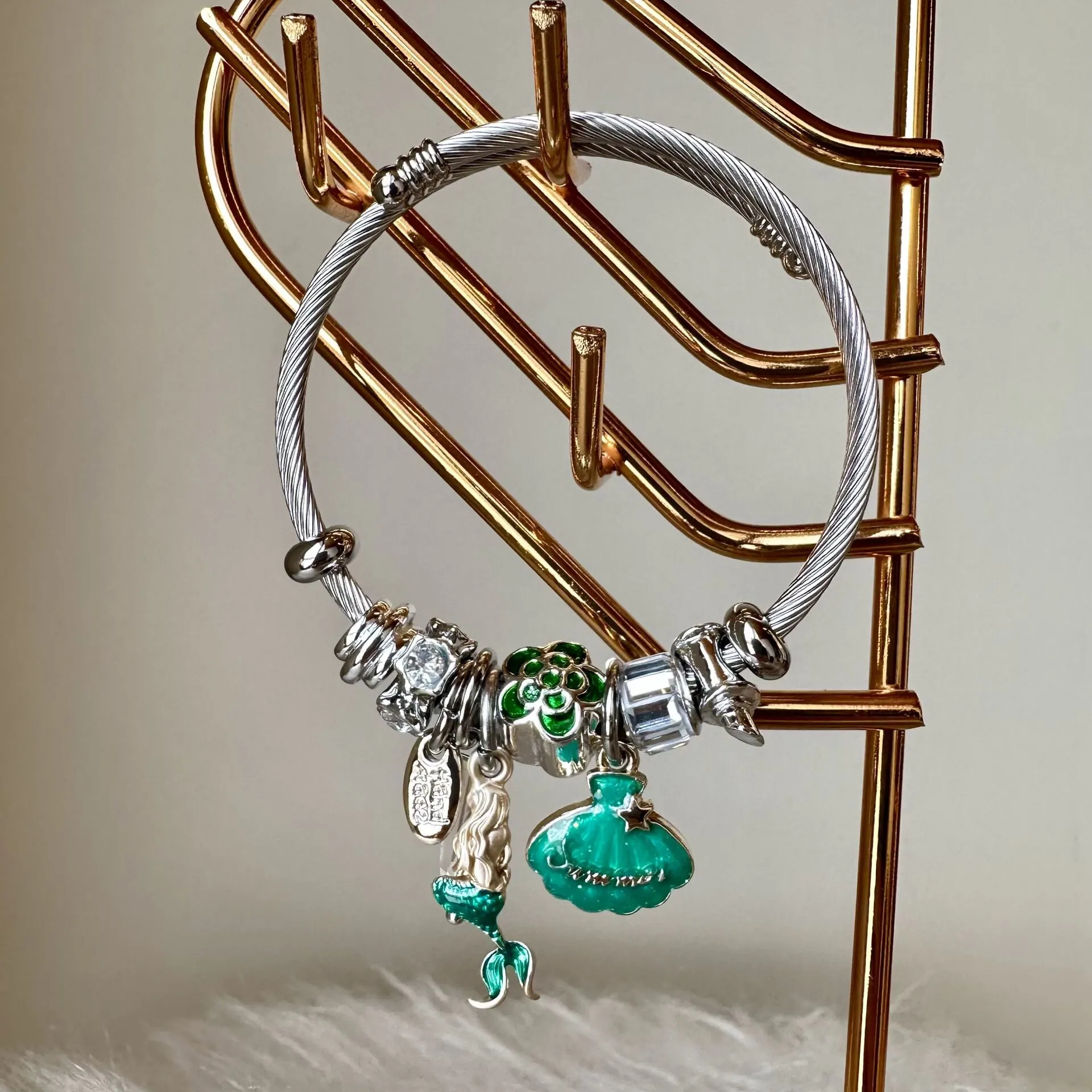 • Kordon kısmı 316l cerrahi Celiktir. 316 l Celik, Celik ürünlerin içerisinde en kalitelisidir. Ürünümüz zaman içerisinde kararmaz paslanmaz ve ezilmezdir. Charm kısımları Çelik değildir pirinç kaplamadır. Denizde ve havuzda rahatlıkla kullanabilirsiniz.
